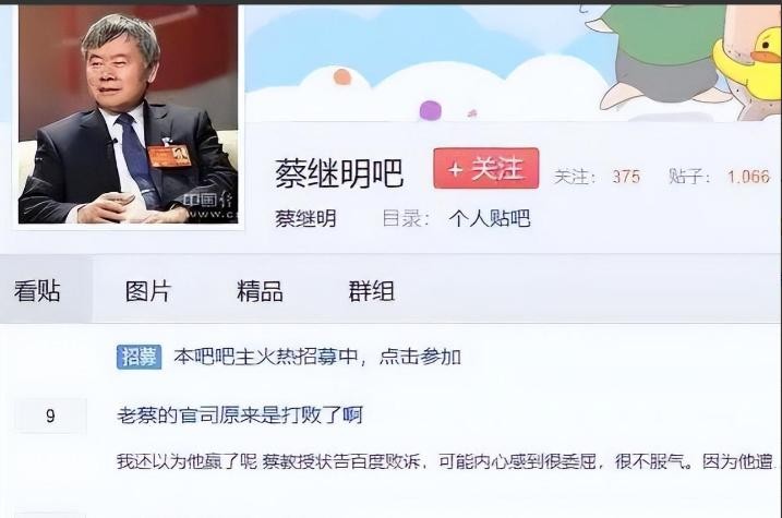 甚至,还有网友创建了一个贴吧,起名为蔡继明吧。贴吧里面的状况更是惨不忍睹,骂声非常集中。不过还好那时候没有热搜,不然岂不是要在热搜上挂个三天三夜。