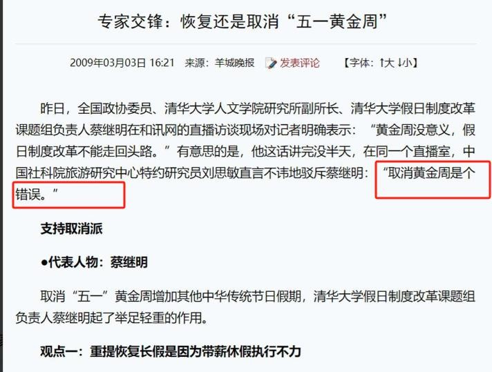 纵观整个“五一假期改革”事件,其实蔡继明也是以改善老百姓日常生活为目的,提出的减少五一假期的建议。蔡继明挨骂,错误也不在他身上,而在于“假期改革”这个话题本身存在争议。直到现在,网友们对五一放假,也依旧争议不断。