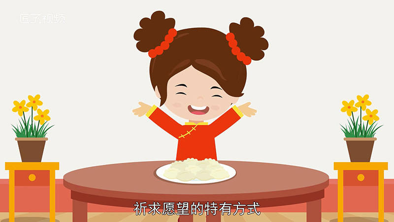 包饺子是表达人们辞旧迎新之际祈求愿望的特有方式。饺子的谐音“交子”即新年与旧年相交的时刻。过年包饺子意味着大吉大利。另外饺子形状像元宝,包饺子意味着包住福运。