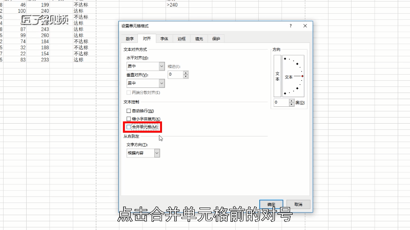 2、在弹出的窗口中点击对齐,找到文本控制,点击合并单元格前的对号,选择确定就OK了。
