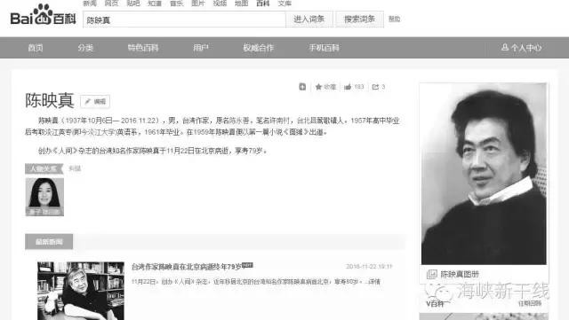 ▲百度搜索也以黑白页面的形式,表达对陈映真的悼念