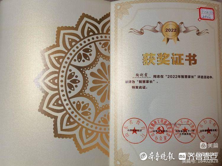 ●2022年8月3日枣庄十五中家委会主任陶利霞被选为“山东省智慧家长”并出席山东省教育大会颁奖典礼。枣庄十五中创新家校协同育人工作,家委会在“警校家”学校周边治理、未成年人骑行电动车治理、法制教育、心理健康教育、家长教师课堂等方面的成绩得到省级领导认可。