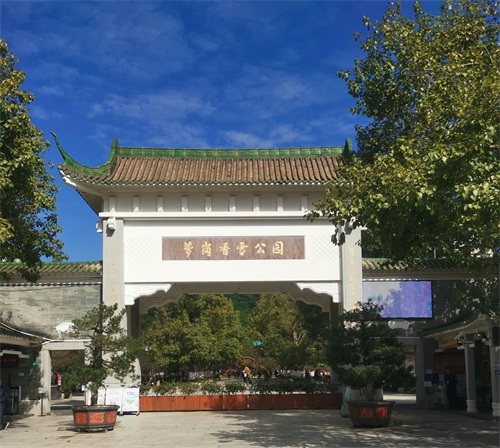 其实走到这里很容易发现香雪公园的正门,像其他景点一样,游人如过江之鲫,穿梭不断,更有无数游客在正门前拍照留念。今天的天气真的很给力,非常蓝!