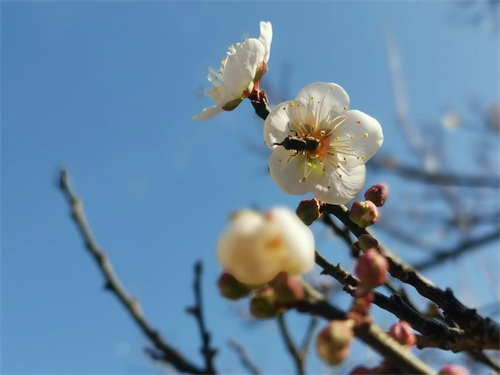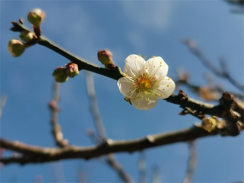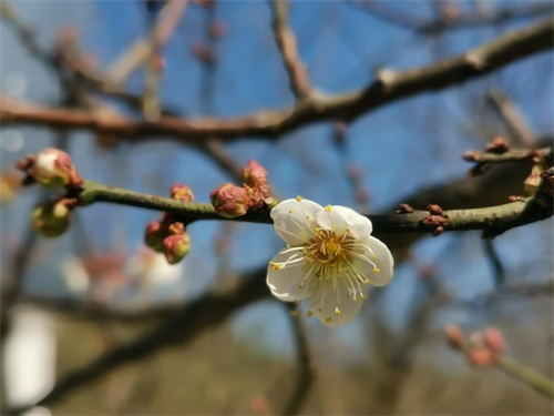 不要以为上一周的寒冷,驱散了梅花的开放。其实只要走进梅林,你会发现很多树上悄悄开放,就像无声的诉说:无论你看没有看到,我就在这里,迎着寒风,暗香浮动!