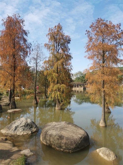 萝岗香雪公园是旧“羊城八景”之一,以十里梅林透花香闻名,其实香雪公园不仅梅花千朵,更有满池的水杉,尤其每年冬至前后,更是美不胜收!趁着天晴好个秋,今天带领大家去领略香雪之美!