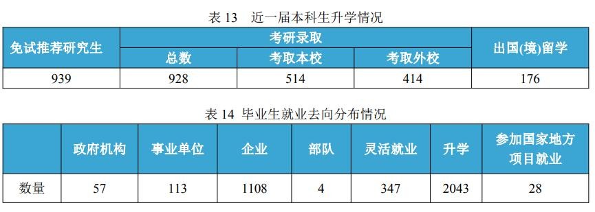 就业人数3700人,应届本科生初次就业率82.63%,其中,国内攻读研究生(升学)1867 人, 升学率41.69%,此外出国(境)留学176 人,出国(境)率 3.93%。见下表↓