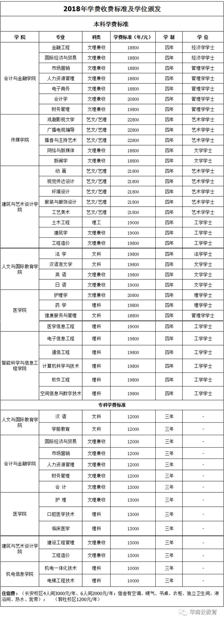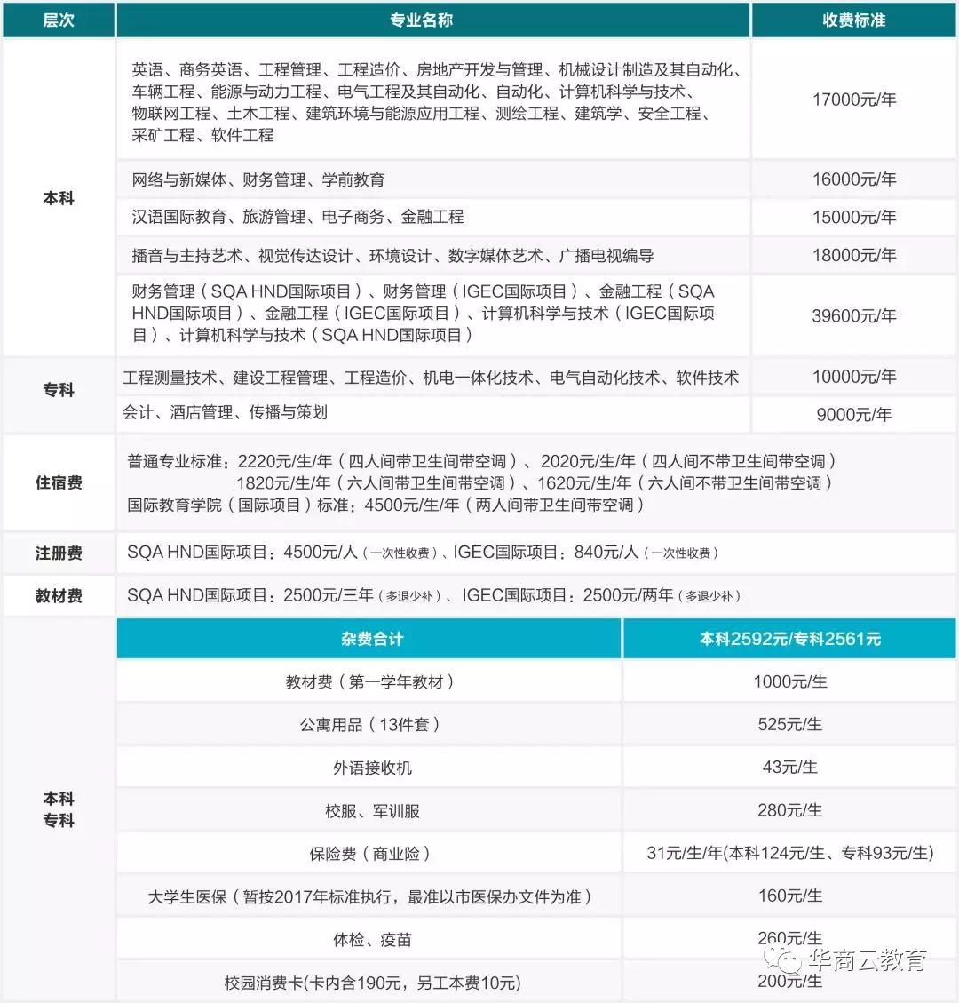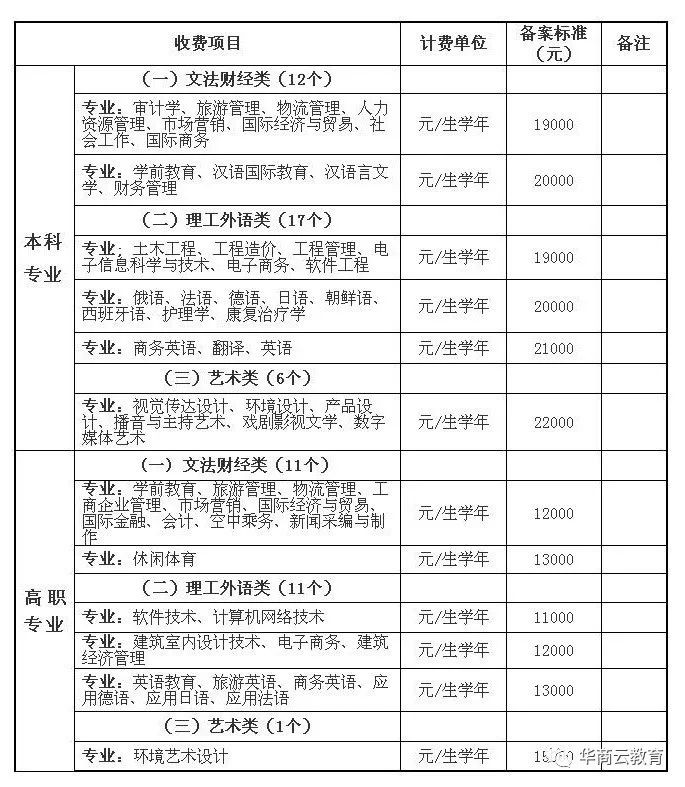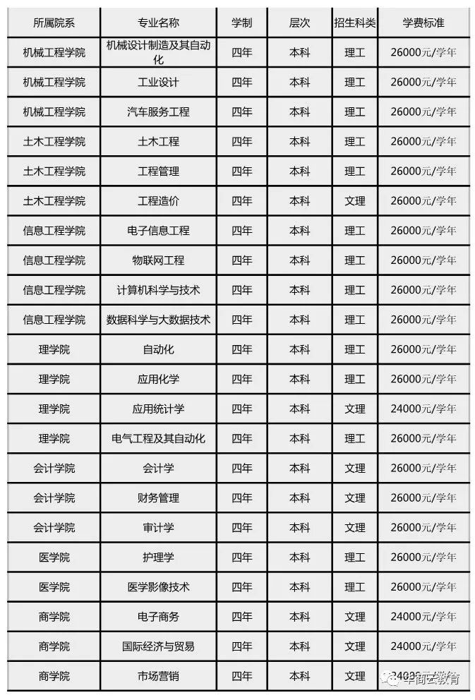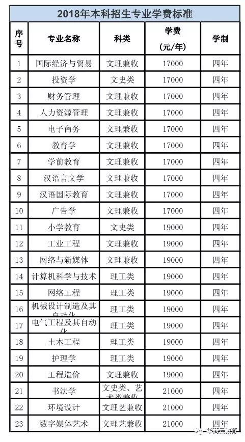 所有专业学费17000元(文理科同价)