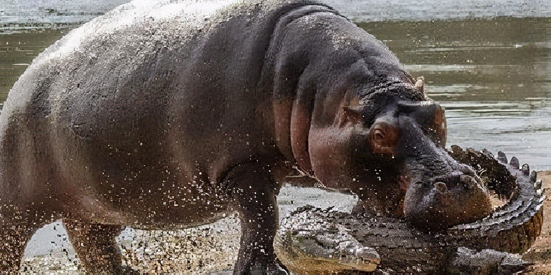 鳄鱼主动攻击河马,只会攻击小河马。在野外浅滩附近,如果鳄鱼发现落单的小河马,也会积极捕杀。这些脆弱的小河马在强壮的鳄鱼面前,就跟一只小鸡一样任人摆布。
