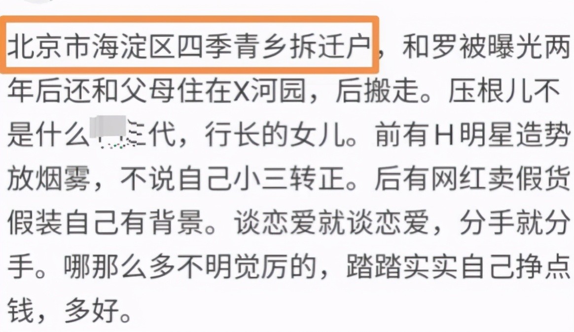 该网友还提及了15年时的新闻,当时罗志祥和周扬青的恋情才曝光,很多狗仔都是在盯着,希望可以获得大的爆料。当时有记者拍到女方回家的照片,发现她回到了一个很破旧的小区,根本不是什么三合园,更不是别墅!在周扬青和罗志祥恋情曝光的后两年里,她一直都和父母住在某河园。