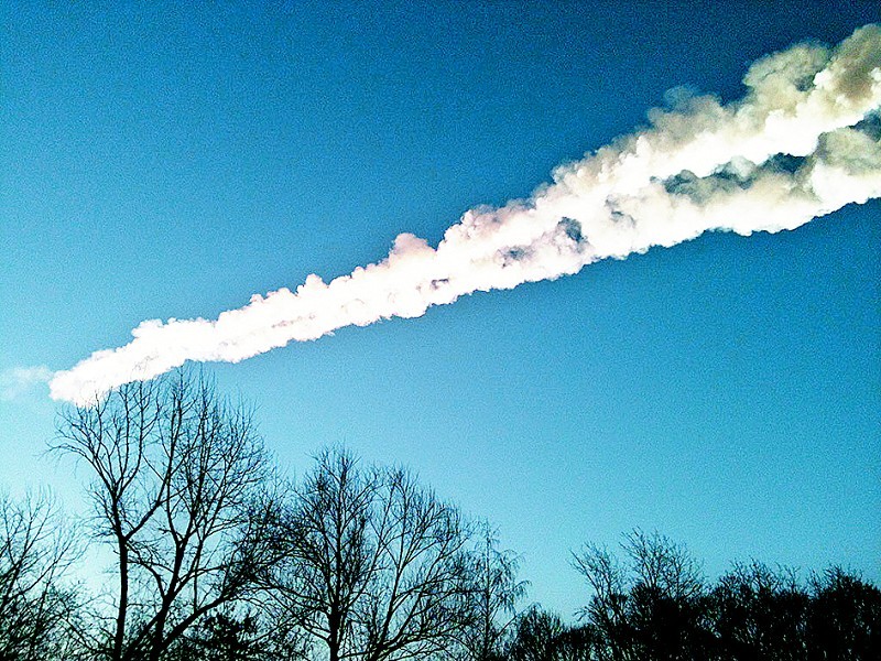 2013年俄罗斯境内小行星坠入地球,在天空中留下的痕迹