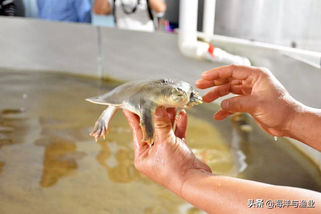 2014年,珠江水产研究所联合广东省渔政总队广宁大队、广宁县生态保护物种资源培育基地,首次成功突破了鼋人工繁殖技术,获得首批人工繁殖幼鼋,成为我国水野濒危动物保护的“高光”时刻;2015年起,该所联合佛山市高明区农业农村局、广东佛山市高明区万绿源生态种养殖有限公司,攻克苗种培育技术难关。经过近5年的研究,现共有不同年龄规格幼鼋群体700余只;该所还开展了全国性的鼋资源调查,初步摸清了全国目前仅在7个分散的人工圈养基地有人工养护成体鼋14只。