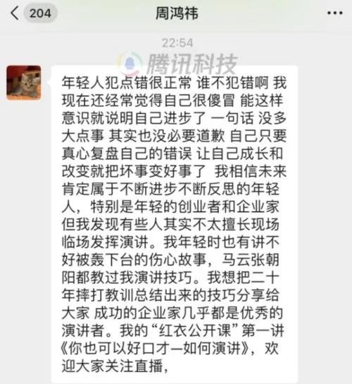 结果:此事件引起了公众的广泛关注和热议。随后,程前对其行为发表了道歉视频,表示自己的行为是不可原谅的,并向周鸿祎等人表达了歉意。周鸿祎对此回应表示,其实没必要道歉,只要真心复盘自己的错误,能让自己成长和改变,就把坏事变好事了。