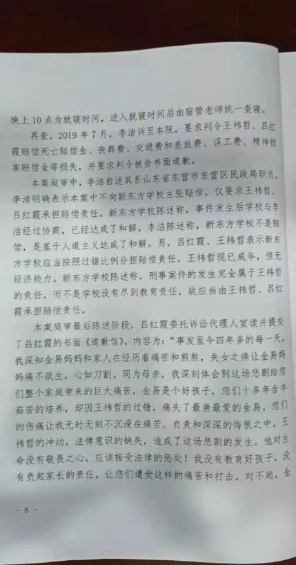 姚金易母亲的微博记录显示,她与新东方之间确实有过一段漫长的诉讼过程。在2018年刑事诉讼二审结束后,凶手被判无期徒刑,随后在2019年,姚金易的母亲提起了民事诉讼。在民事诉讼的过程中,姚金易母亲明确表示不向新东方学校主张赔偿,而是基于人道主义原则与新东方达成了和解。