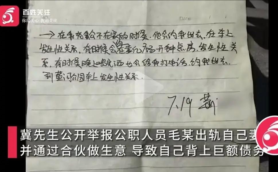 为了增加可信度,冀某还在网上公开了一份据称是其妻子所写的保证书。这份保证书详细记录了毛某和妻子荆某的恋情经过,包括双方发生关系的时间、地点,以及荆某对丈夫的忏悔等内容,真可谓是有据可查、铁证如山。