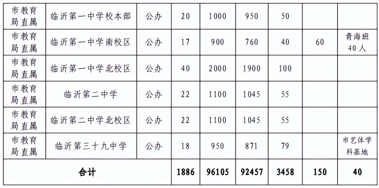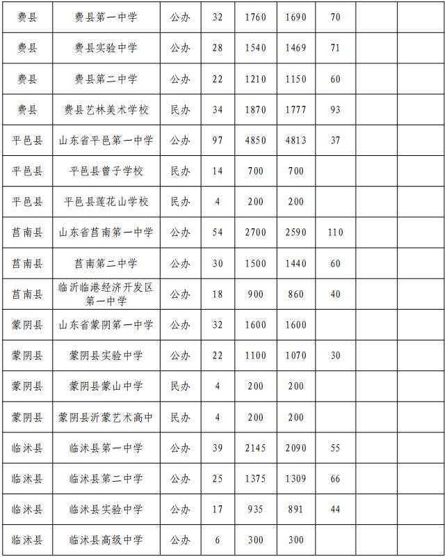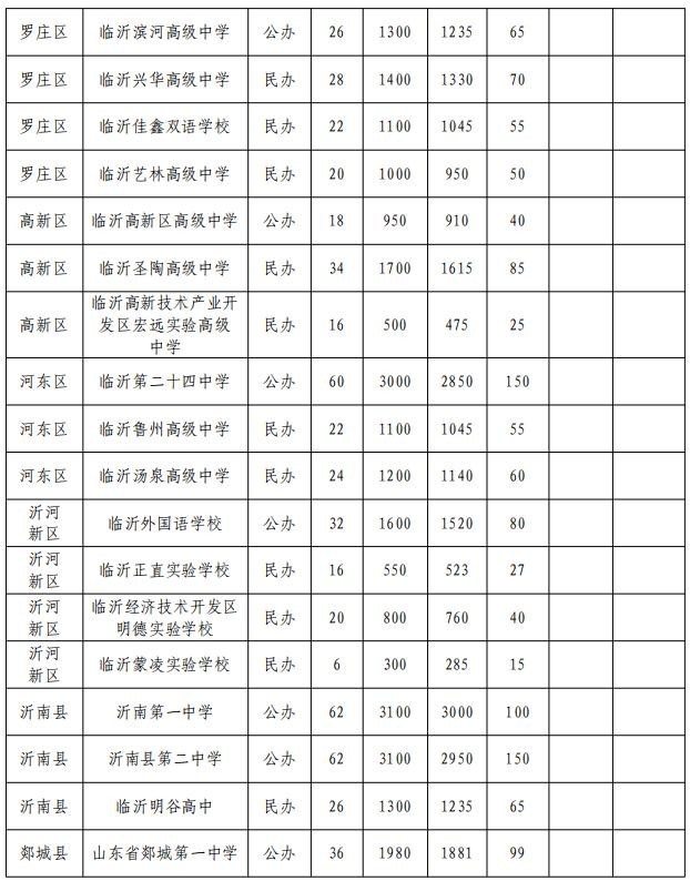 2023年临沂中考招生计划:(附招生计划表)