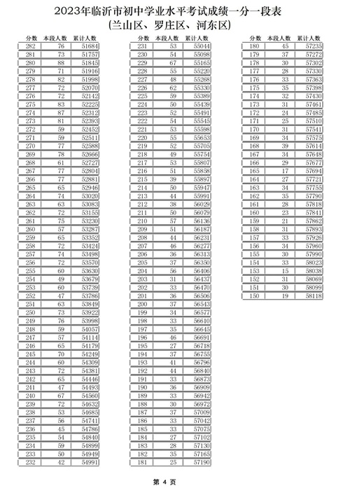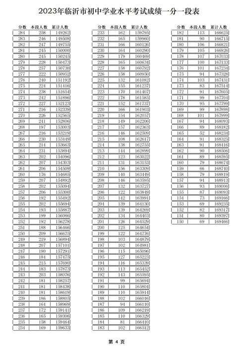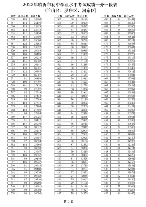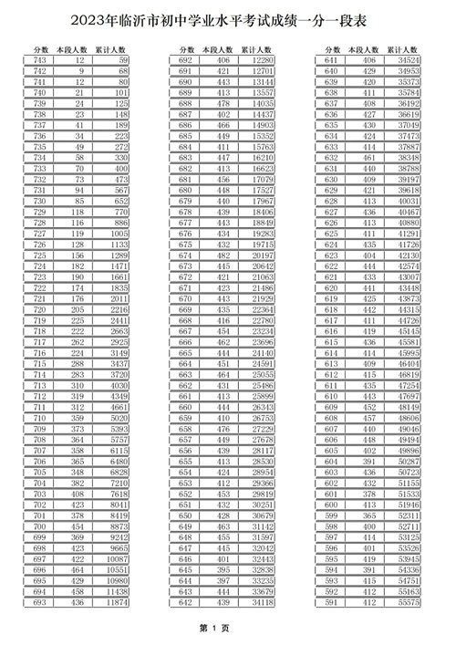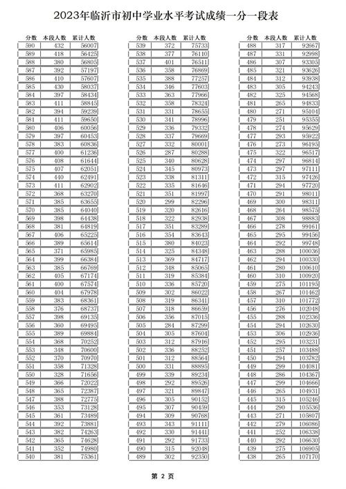 01 2023年临沂中考成绩一分一段表