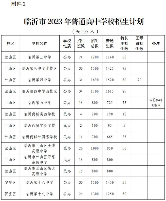 02 2023年临沂市普通高中招生计划