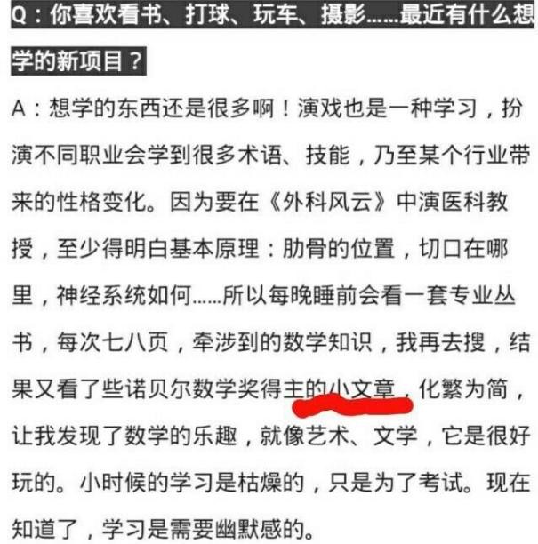 在一次采访中,靳东说自己会看“诺贝尔数学奖”得主的小文章,然而“诺贝尔奖”是没有“数学奖”的。