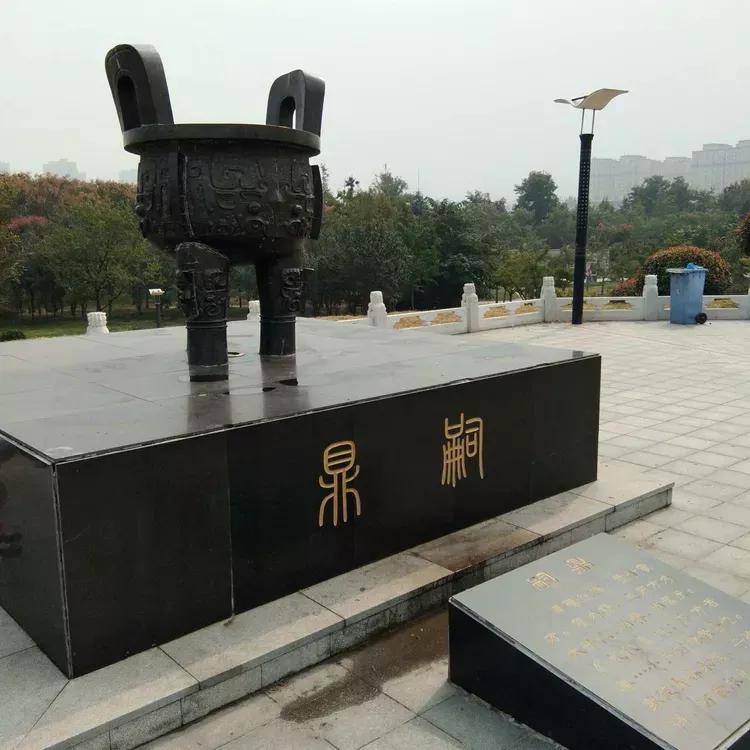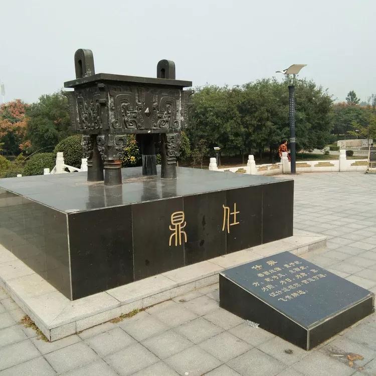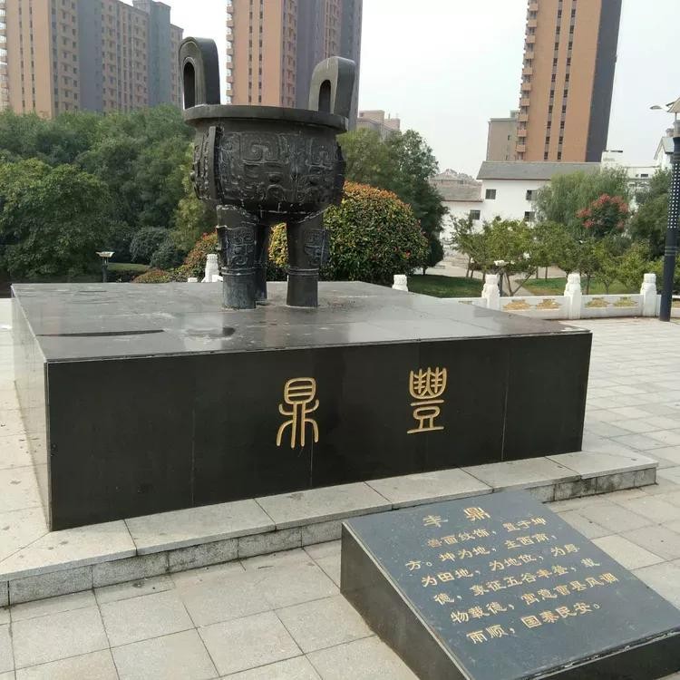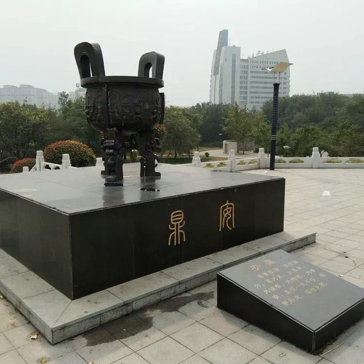 问鼎天下:公元1700年,商汤在此建都(今谓之曹亳),成为商朝早期的政治文化中心,被历史学家称为“华夏第一都”。通过雕塑再现曹县已经久远的辉煌。地形高3米,上铺装为八卦图案,上布九鼎,它是九州的象征,也是国家政权的象征,夏、商、周三个朝代,都把它作为世代相传的国宝,它标志着天子的尊严,王位的神圣。宝鼎置于中间位置,其他八鼎分别为爱鼎、寿鼎、财鼎、仕鼎、安鼎、丰鼎、智鼎、嗣鼎,按八卦之位放置。