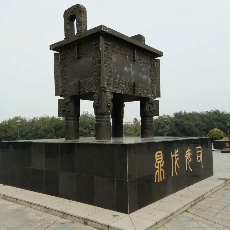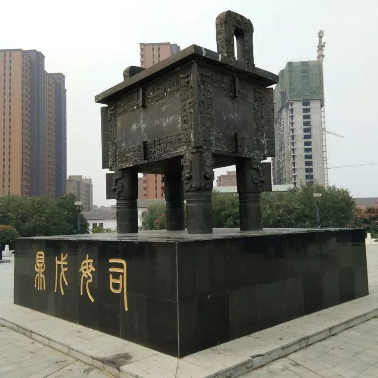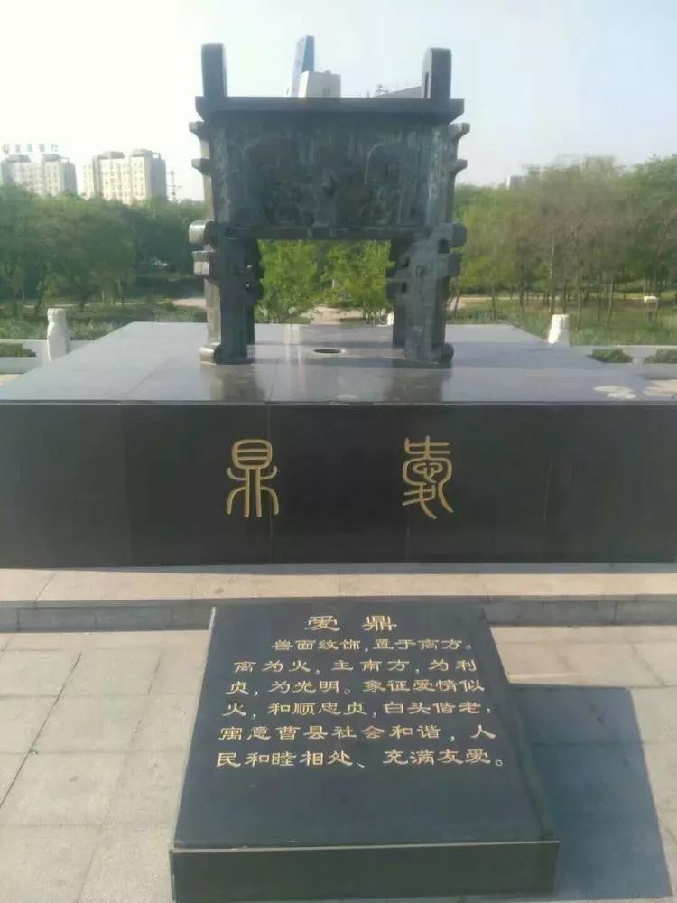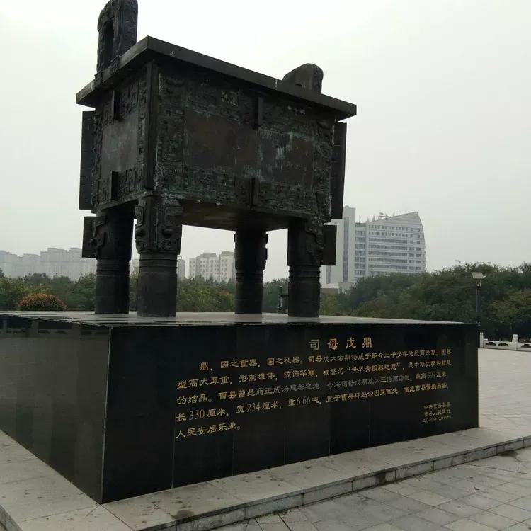 曹县商王城汤建阳之地。今將司母戊鼎放大三倍,高399厘米,长330厘米,宽234厘米,重6.66吨,置于曹县四季河公园最高点,意为曹县繁荣昌盛,人们安居乐业。