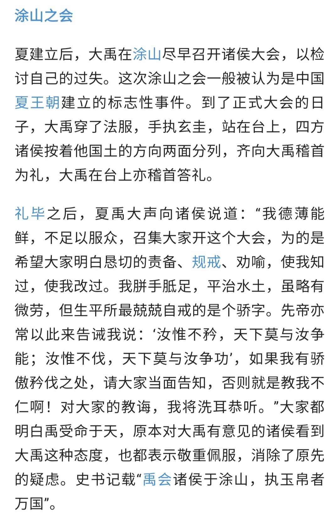 禹曾在涂山大会天下诸侯,献上玉帛前来朝见的诸侯竟达万名之众。《左传·哀公七年》记载:“禹合诸侯于涂山,执玉帛者万国。”