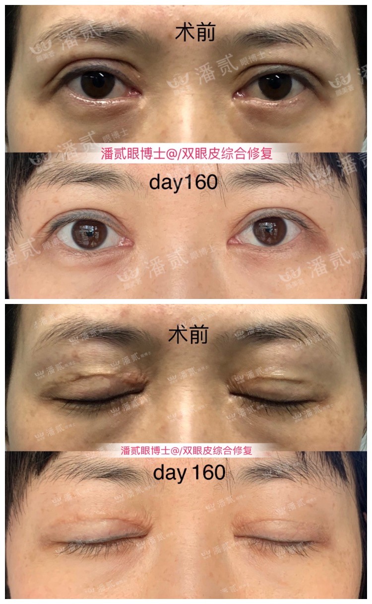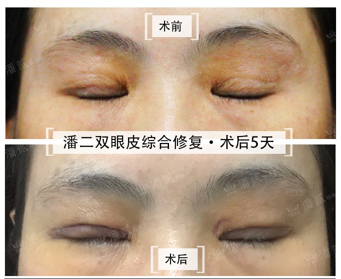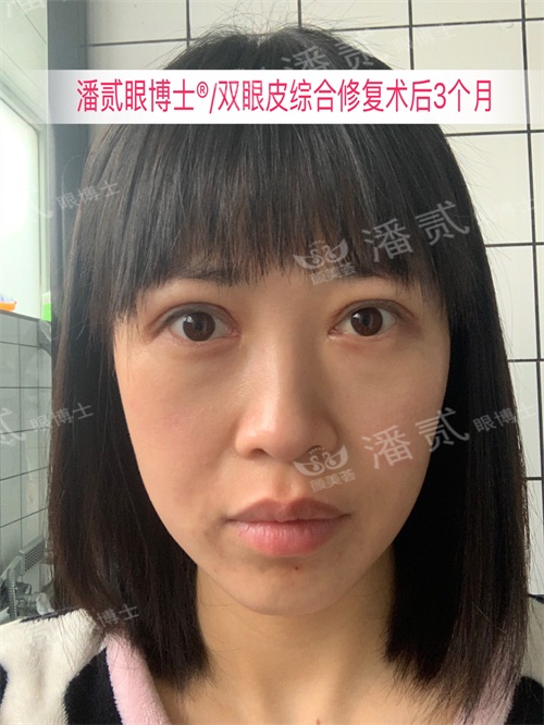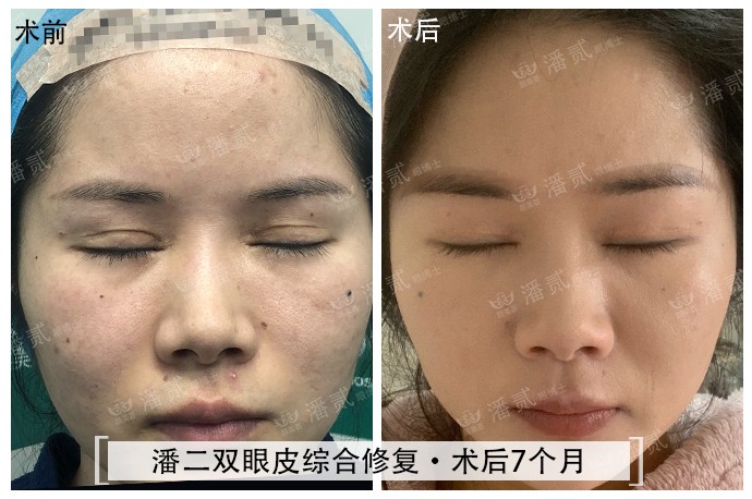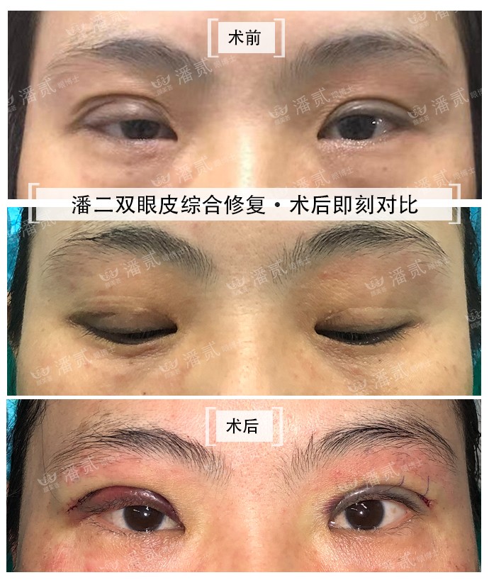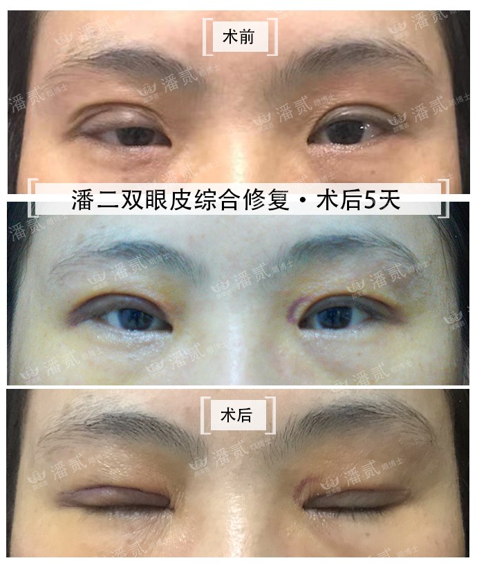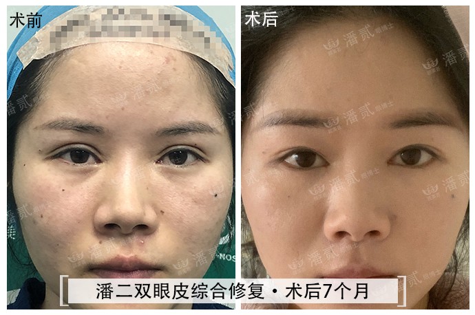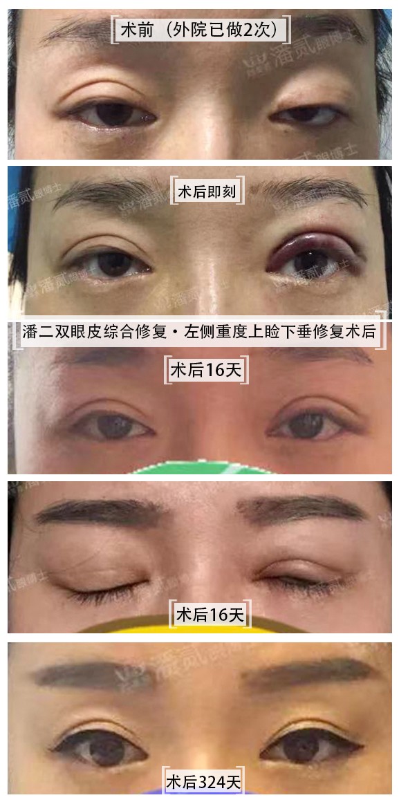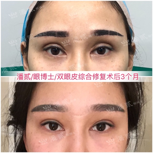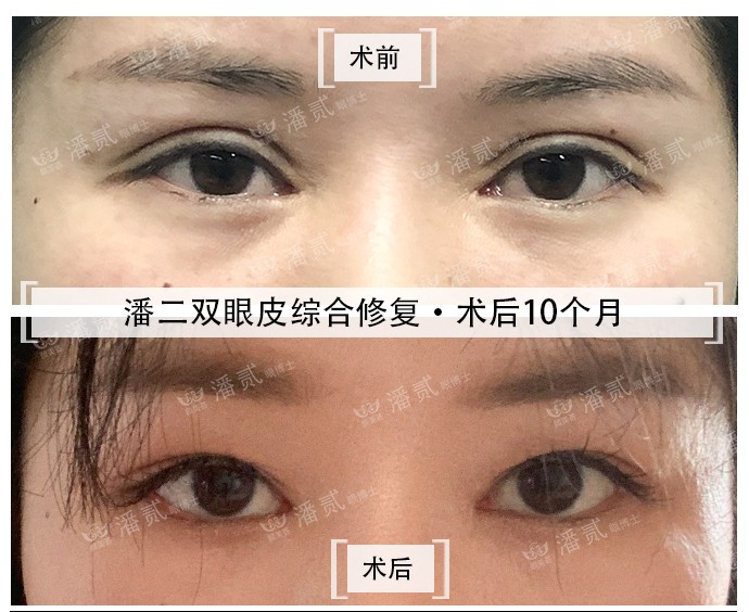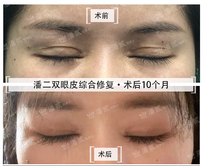 潘二双眼皮综合修复矫正上睑下垂和双眼皮对称性,术后双眼皮差异性缩小。