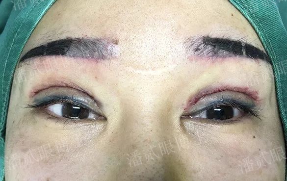 患者的眼睛前前后后做过至少4次以上(其实不止4次),反反复复的手术效果依然不理想,外观越来越宽深同时伴睁眼不适,多次修复都没有变自然,渐渐从绝望到无助,来面诊后发现皮肤量很缺,一直扯了很久的皮肤,才最终达到了可以修复的条件。