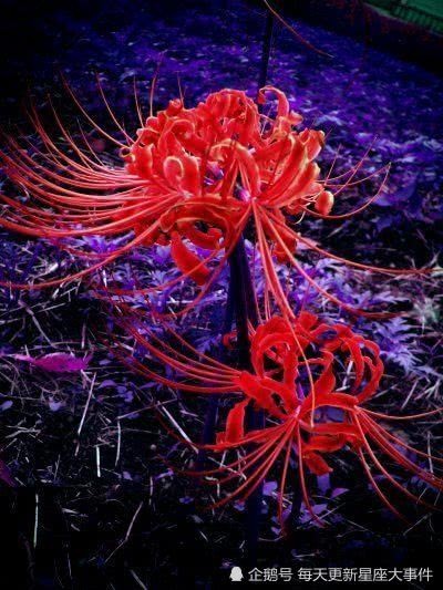 1.紫色彼岸花花语:恶魔的温柔,给离开的灵魂一个指引和安慰。