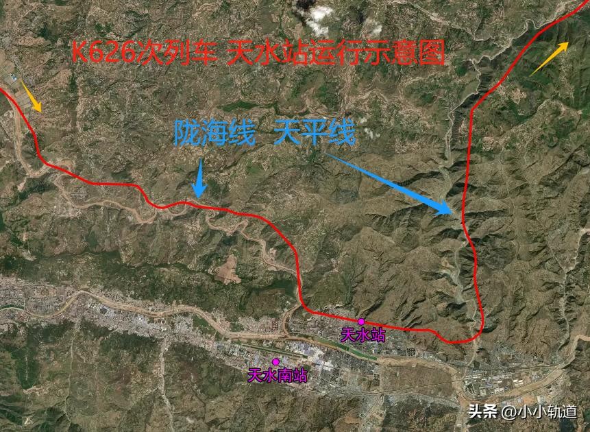 K626次列车过陇海线,然后走天平线,绕行天水站。