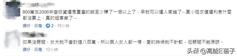 消息出来后,多数网友都在心疼夏光莉,甚至有网友觉得夏光莉只要对方还800万台币(约180.4万人民币)而不算上利息,已经是客气了。