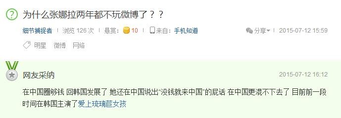 对于微博上长达三年无更新的原因,张娜拉给出的理由是:忘记密码。