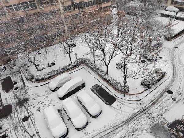 早晨7点的小区被雪花装点成纯白色(央广网发 王亚楠 摄)