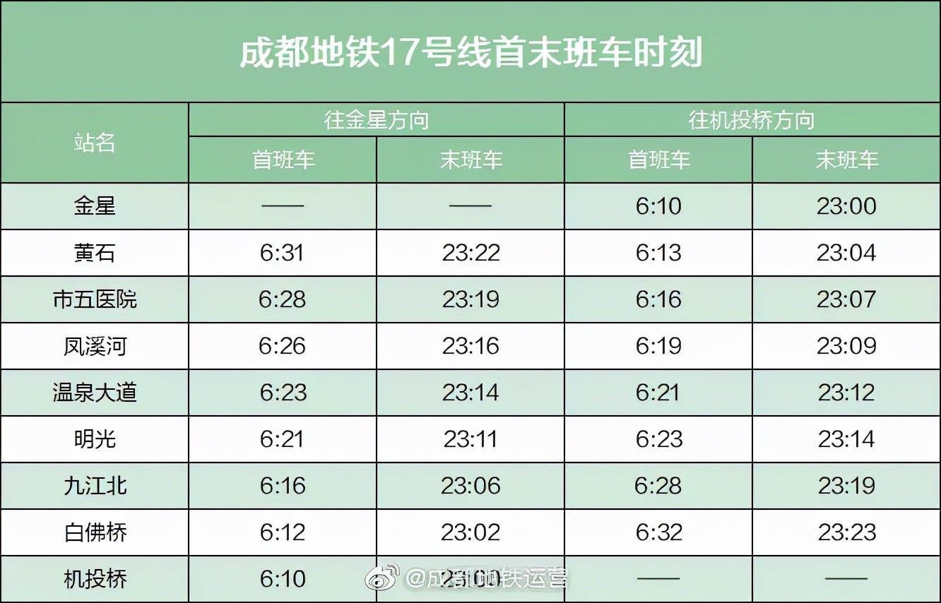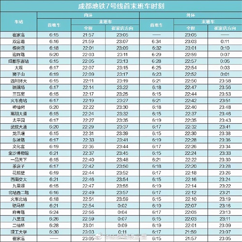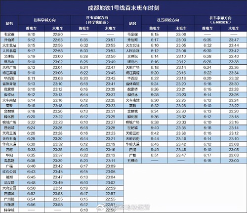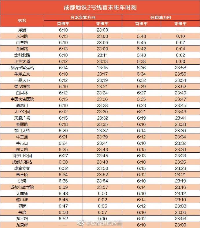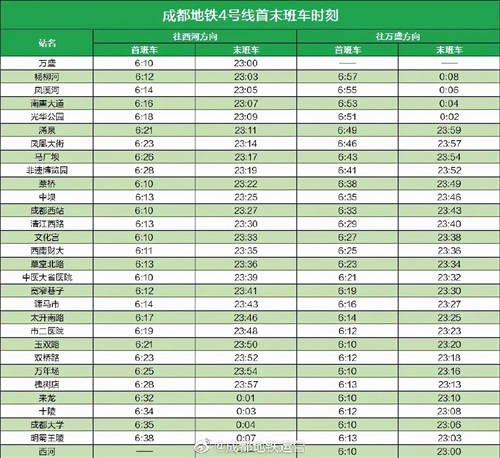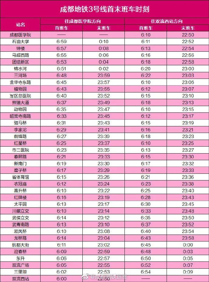 最新!赶紧收藏成都地铁最新首末班车时刻表 2025-10-15 12:34 点击: 来源:迪趣网 摘要:最新!赶紧收藏成都地铁最新首末班车时刻表 近日 成都地铁运营公布了 成都地铁全线网各线路 最新首末班车时刻表 各位小可爱一定要看准首末班车 合理安排时间出行 ↓↓↓ -END- 来 最新!赶紧收藏成都地铁最新首末班车时刻表近日成都地铁运营公布了成都地铁全线网各线路最新首末班车时刻表各位小可爱一定要看准首末班车合理安排时间出行↓↓↓-END-来源:成都发布 相关标签: 上一篇:一天一个成语:不置一词 下一篇:230 中国20个最适合旅游的地方,你去过哪几个呢?