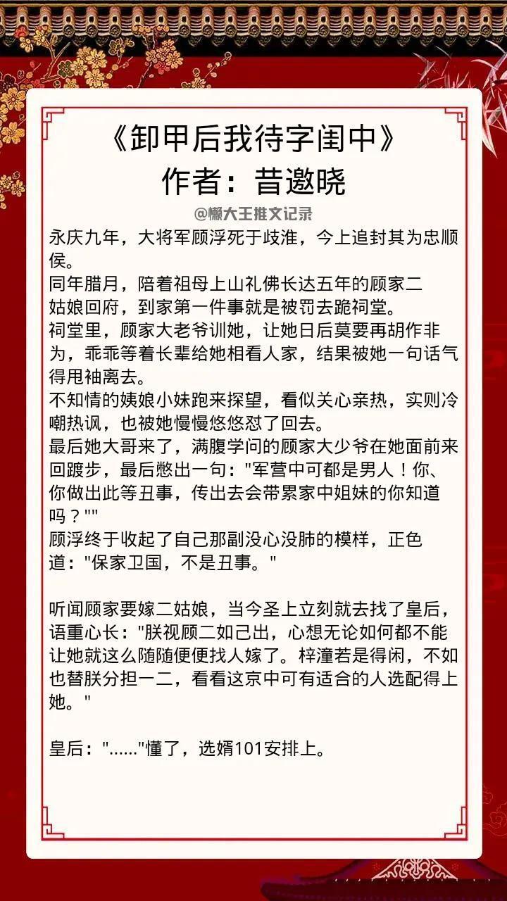 3.《卸甲后我待字闺中》作者:昔邀晓