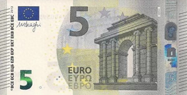 共同特征:欧洲地图、面额及单位(拉丁文及希腊文)、钞票系列号(前缀字母代表国家)、象征欧洲统一的十二颗星(部分)