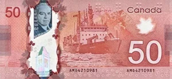 加拿大元是加拿大的官方货币,由加拿大银行统一发行,最大的面额为100,另外还有1元、2元以及5、10、25分的面额。