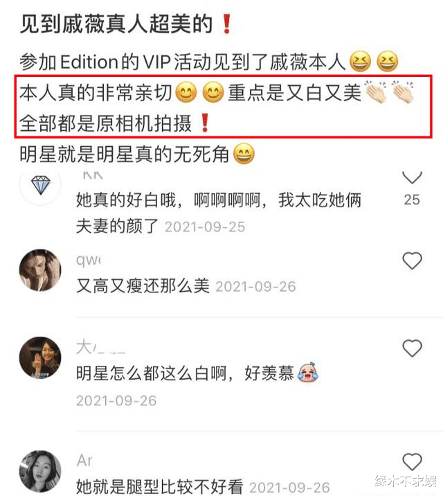 拍摄中表示戚薇“本人真的非常亲切,重点是又白又美,全部都是原相机拍摄,明星就是明星,真的无死角”。