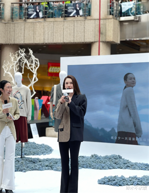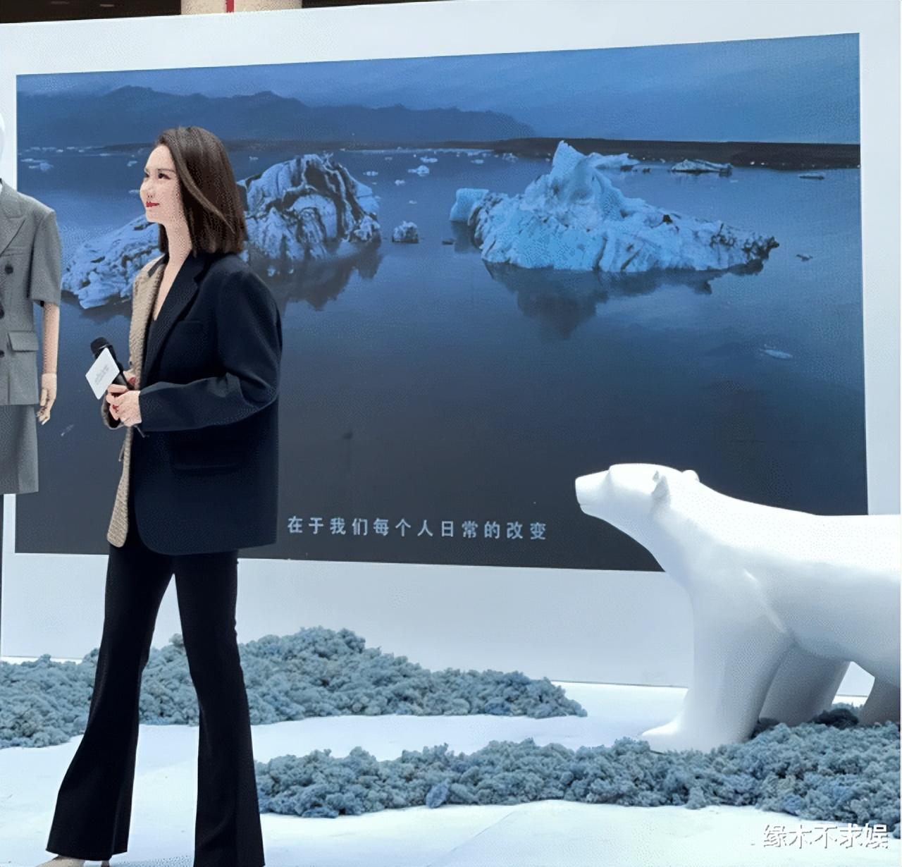 之后戚薇双手握住,站姿力挺很是优雅,她面带笑容静静地听主持人讲解。