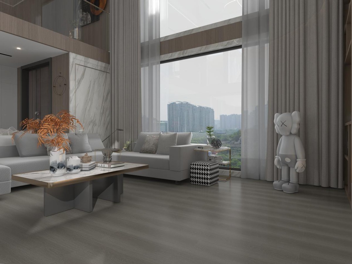 灰色的宁静致远配合细腻木纹装饰,轻轻浅浅、丝丝缕缕间让家的美好便悄然入梦。独有的靓面工艺既赋予了其拉丝套色的视觉效果,又给予了其平面产品的质感,可谓是完全刷新了对实木强化地板的认知,却又不会显得不伦不类。低调优雅的高级灰让整个空间谦逊不张扬,宁静和谐,自成格调。