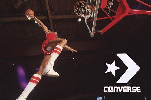 1991年是匡威辉煌的一年,在当时各路体育品牌群雄逐鹿的背景下匡威成为NBA指定比赛用鞋。匡威公司2003年被耐克公司收购了。当j博士朱利叶斯·欧文从罚球线起跳扣篮,一个传奇的名字也随即镌刻在了NBA的"万神殿"上。与j博士的名字一同镌刻的,还有一个当仁不让的伟大经典──匡威篮球鞋。就像古代神话中精灵神通的"魔鞋",j博士、"魔术师"约翰逊、"大鸟"伯德、 "大妈"拉里、"篮板王"罗德曼和"邮差"马龙都穿着converse创造了一段又段脍炙人口的现代神话。