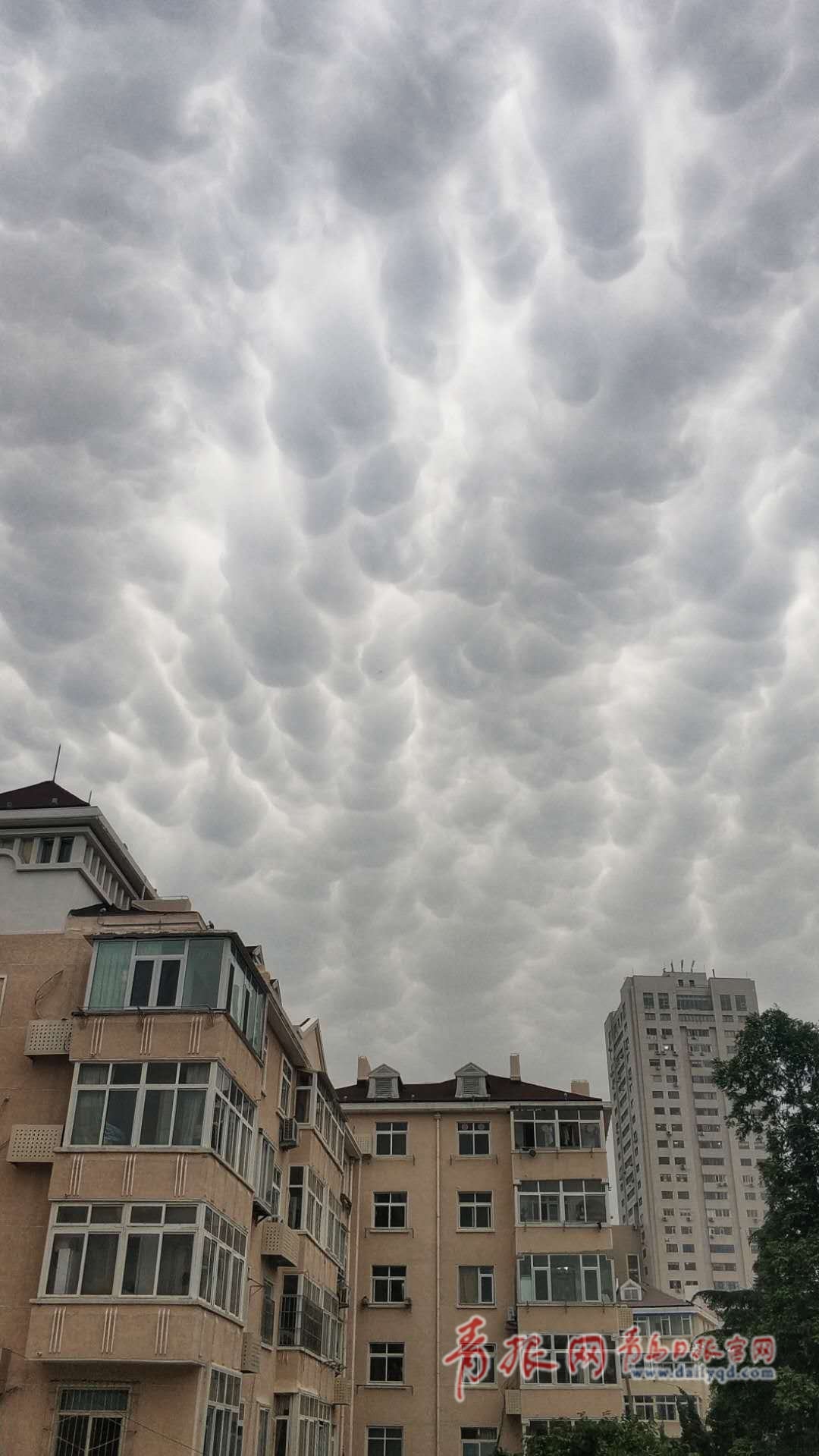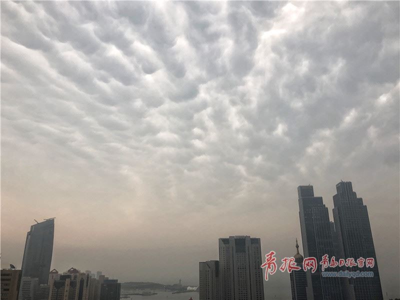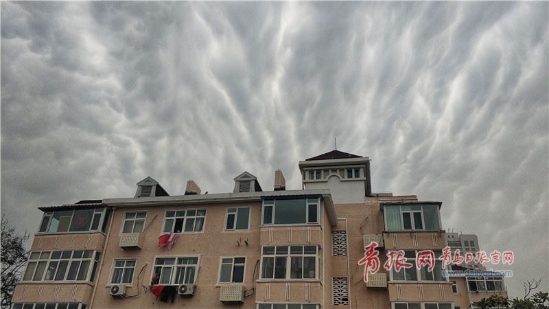 “乳状云”由云层下密密麻麻的波瓣组成,通常为恶劣天气的预兆。(“青岛观”摄影师 薄闲阳/摄)