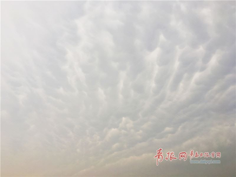 罕见!青岛上空现“乳状云”奇观