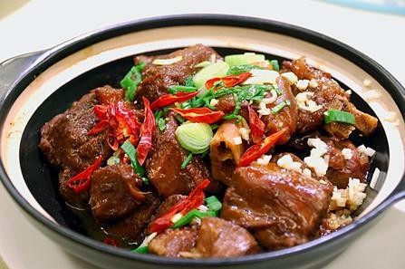 2、炒锅烧热,倒入油,先放八角炒香后放入羊肉、白菜,然后加酱油、 料酒、糖、味精和白汤 250 克,焖酥后,先取出白菜作底,后将羊肉取出盖在白菜上,卤汁留在 锅中,加水淀粉勾芡,加大蒜、熟油少许,出锅浇在肉上即好。
