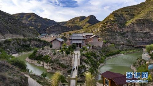 这是8月14日无人机拍摄的位于延川县乾坤湾景区内的红军东征革命纪念馆。 新华社记者 陶明 摄