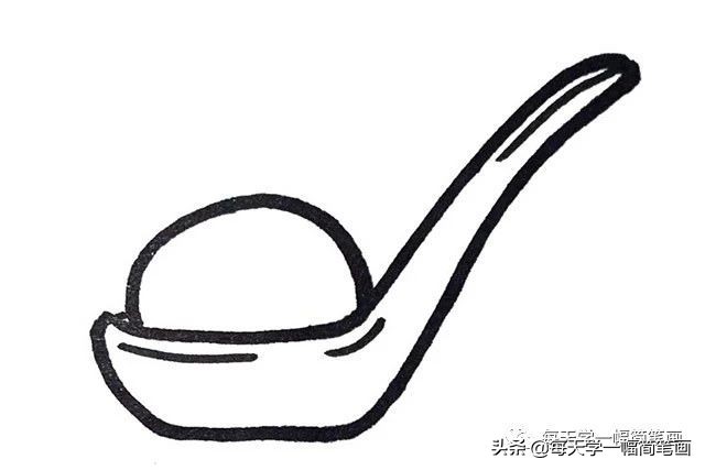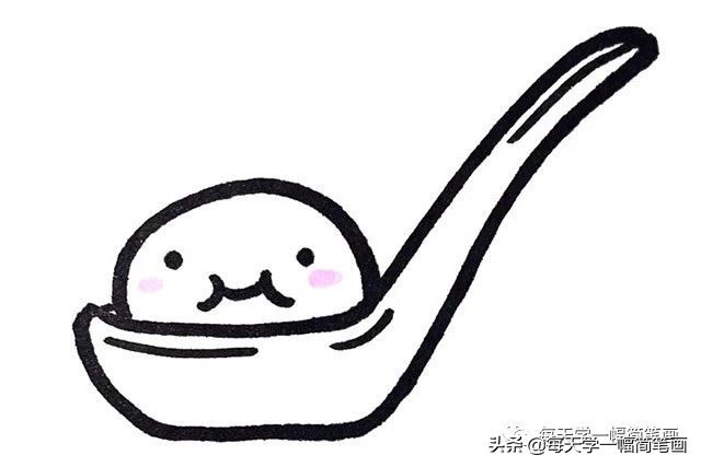 2.在勺子里面画出一个半圆,作为汤圆的轮廓。