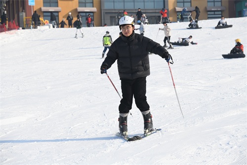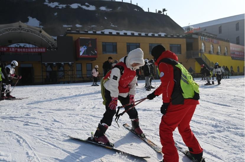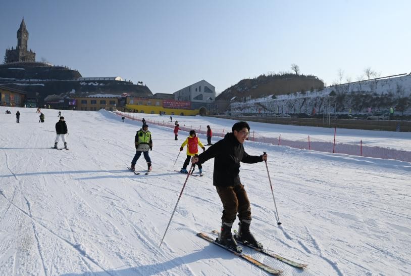 太原市杏花岭区采薇庄园滑雪场内,游客在冰雪世界中滑雪游玩