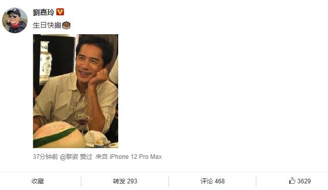 6月27日,刘嘉玲在个人社交平台晒出一张梁朝伟的帅照为其庆生,并附文:“生日快乐”,照片中梁朝伟一手托着腮心情不错。此前,刘嘉玲也多次在每年的6月27日为老公梁朝伟庆生,恩爱甜蜜。