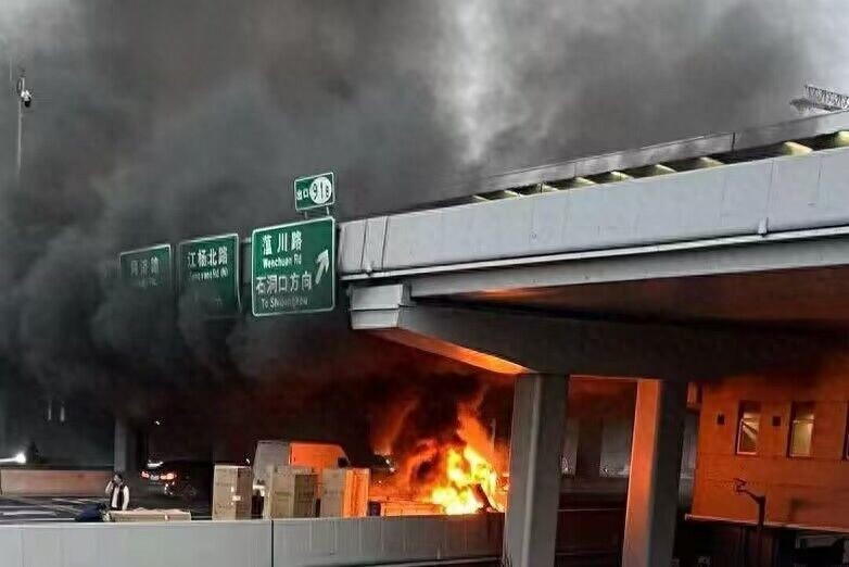 上海地铁车厢内出现浓烟 客服:车站外高架上有车自燃