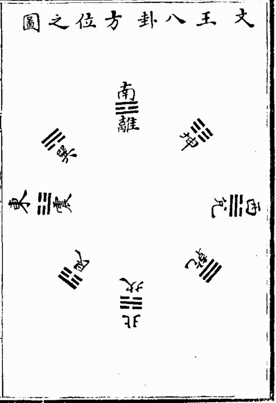 据此八卦方位的排列为:北坎南离,东震西兑,艮东北,巽东南,坤西南,乾西北。