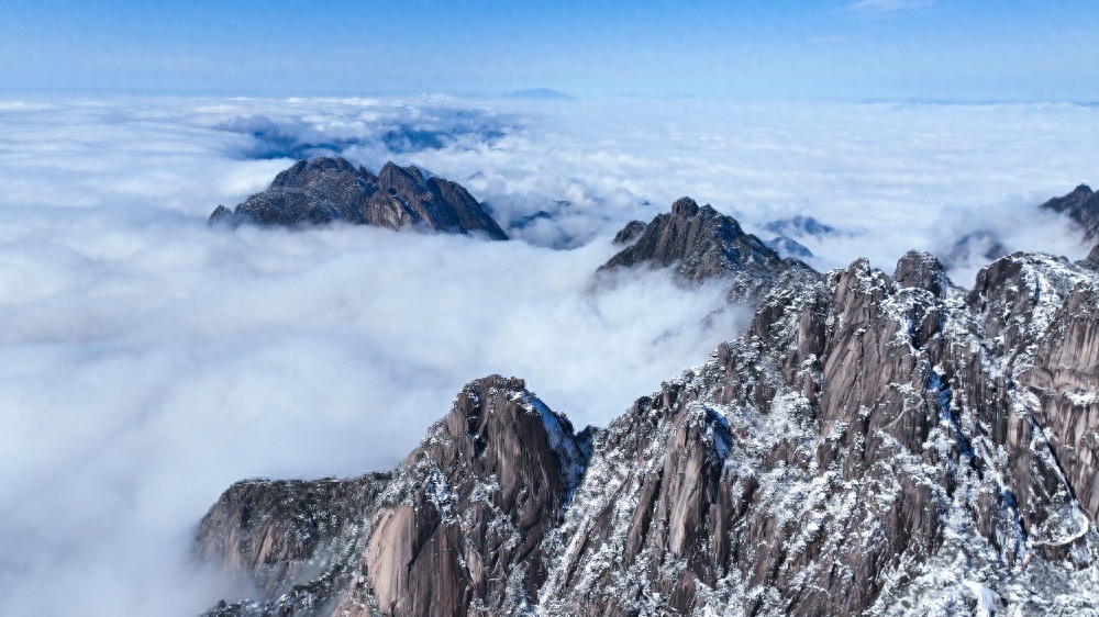 2025年2月18日,安徽黄山风景区景色(无人机照片)。新华社发(樊成柱 摄)
